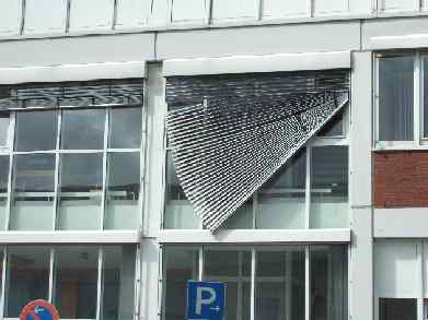 Die Außenjalousien sind besonders praktisch, wenn im Sommer die Sonne stark auf unser Gebäude scheint. Dann halten Sie doch sehr viel mehr Wärmestrahlung ab als Innenjalousien. (Obwohl irgendwann nützen die auch nichts mehr gegen die Hitze.) Eigentlich haben wir einen Sensor außen am Haus, der es registriert, wenn der Wind zu stark für unsere Außenjalousien ist und fährt sie dann automatisch hoch. Aber soweit ich weiß, ist es eben nur ein Sensor. Und wenn der dann da sitzt, wo der Wind gerade nicht hinterhakt, dann passiert so was.