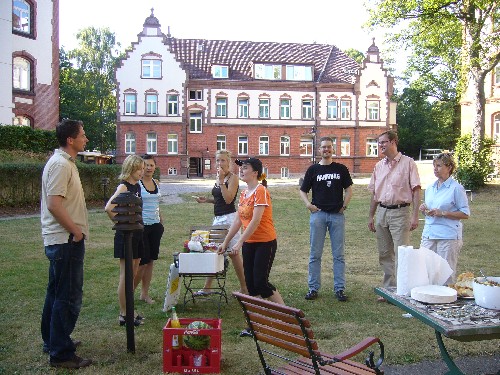 Nach Feierabend haben wir dann gemeinsam alles nach unten gebracht und uns im Gartenbereich ausgebreitet.