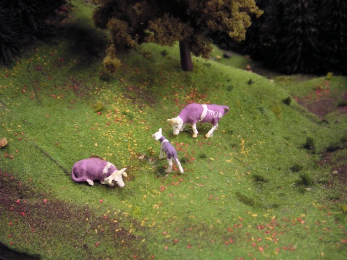 Lila Kühe auf der Weide
