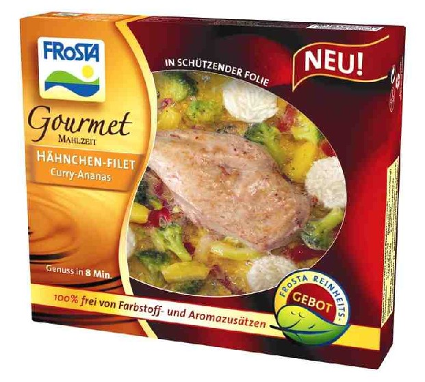 16.11.2006  at 13:36 Diesen künstlichen Eindruck hatte ich auch zunächst, als ich das Produkt zum ersten Mal auf der INTERCOOL gesehen habe. Das "Problem" ist meine Meinung nach, dass die neu gewählte Verpackungsform beim Konsumenten noch nicht bekannt ist (in diesem Zusammenhang hört man auch oft "ist nicht gelernt"). Dadurch könnte eine gewisse Berührungsangst mit dem Produkt entstehen. Trotzdem finde ich persönlich es richtig, nicht mit dem Produkt hinterm Berg zu halten und es nicht hinter Pappe und schönen Bildern zu verstecken. Die Lösung sehe ich in einem Marketing-Ansatz, der (i) das Reinheitsgebot von FRoSTA weiter/noch deutlicher betont und der (ii) die Goumet-Mahlzeiten "erklärt". Viel Erfolg weiterhin!