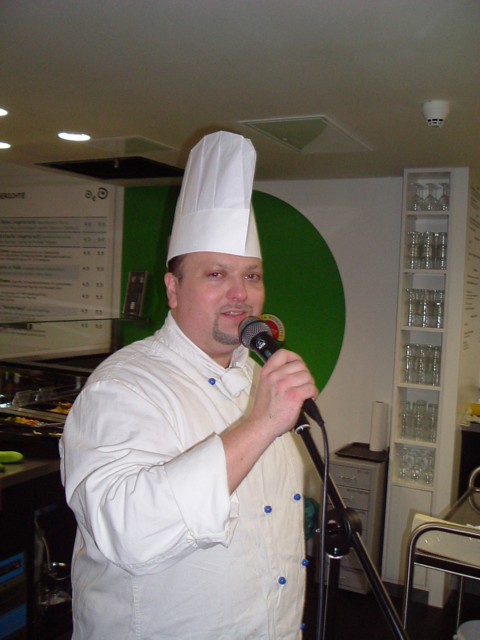 Was macht Volker wohl auf dem Bild? Singt den aktuellen FRoSTA-Jingle?? Nein – er ruft Gast Nr. 55 auf, sein Gericht abzuholen.