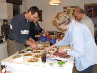 Wie in unserer Aufgabe vorgegeben, wurde um Punkt 20 Uhr der Abend eröffnet und wie vorgesehen, haben zwei aus unserem Team quasi Empfangskomitee und Bedienung gespielt. Dann folgte das Essen in 5 Gängen: