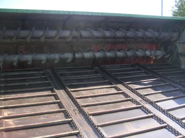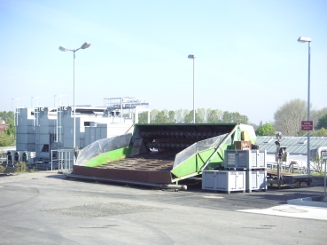 Hier wären eigentlich die geernteten Spinatmengen angeliefert worden. Die Landwirte kippen ihren Anhänger in diesen Auffangbehälter aus, von wo aus der Spinat über Förderbänder in die Produktion geleitet wird. Dort wird er zunächst gereinigt und dann weiterverarbeitet. Wenn er denn gekommen wäre.