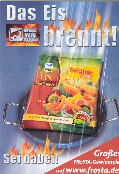 Am 10./11. März findet in Innsbruck/Tirol die WOK WM 2006 statt, ausgerichtet von „TV total“ mit Moderator Stefan Raab und live übertragen auf ProSieben! Und mit von der Partie ist diesmal auch ein FRoSTA-Team, das sich halsbrecherisch den Gefahren der Eisbahn stellen wird. Das wird a Gaudi.