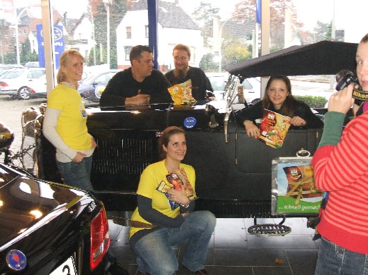 Heute waren wir hier in Hamburg mit dem Moderatorenteam bei Gasparatos, einer Autowerkstatt in der Osdorfer Landstraße. Hier haben wir für die Mechaniker unsere Gourmet-Mahlzeiten in die Mikrowelle geschoben, die mit guten Hunger weggeputzt wurden. Und weil André und Jürgen ihre Gabel noch nicht aus den Hand legen wollten, haben wir ihnen noch eine Landhaus-Pfanne gemacht.