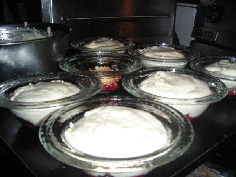 1.Beeren am Vorabend auftauen lassen und in 12 Schälchen gleichmäßig verteilen. Mit ca. je einem Zwieback bedecken.