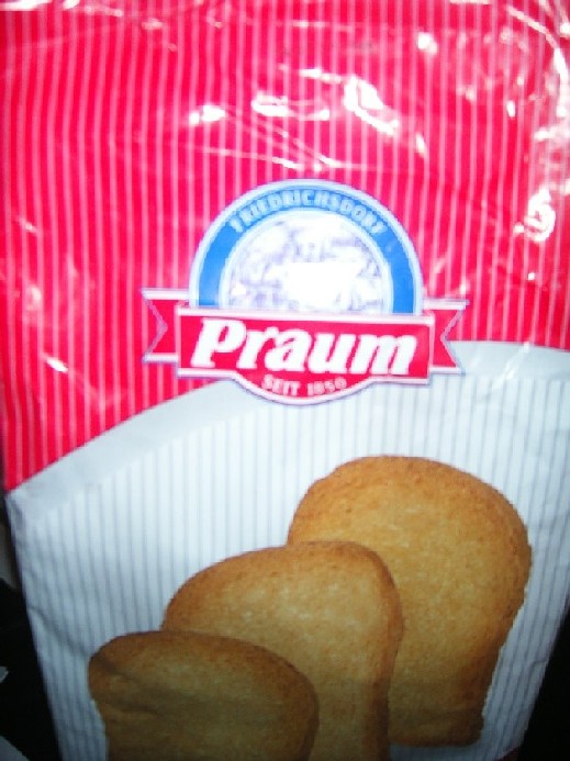 Martin Blunck hat mich neulich nach ein paar Nachtischrezepten gefragt. Ich wollte immer schon ein altbekanntes FRoSTA Rezept dort machen: Beeren – Tiramisu. Das Problem waren immer die vielen Zusatzstoffe (Aromen, Emulgatoren, Backtriebmittel) in den Biskuits. Die wollen wir auch in unseren Nachtischen nicht haben. Gestern habe ich dann endlich einen Zwieback bei miniMal entdeckt der als einziger völlig ohne Zusatzstoffe gemacht ist: Praum aus Friedrichsdorf (übrigens die erste Marke die keine eigene Webseite hat!).